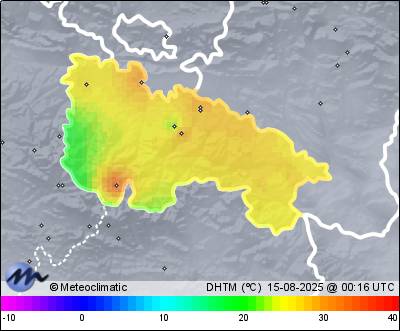 | 14-08-2025 | | | Máx. | Mín. | | | Temperatura | 36,8 | 19,6 | °C | | Humedad | 85 | 23 | % | | Viento | 29 | n/a | km/h | | Presión | 1.014 | 1.010 | hPa | | Precipitación | 0,0 | mm |