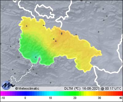 | 15-08-2025 | | | Máx. | Mín. | | | Temperatura | 35,9 | 14,6 | °C | | Humedad | 89 | 26 | % | | Viento | 23 | n/a | km/h | | Presión | 1.027 | 1.020 | hPa | | Precipitación | 1,4 | mm |