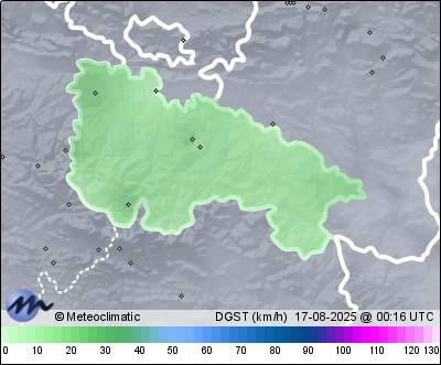 | 16-08-2025 | | | Máx. | Mín. | | | Temperatura | 39,0 | 23,3 | °C | | Humedad | 58 | 12 | % | | Viento | 27 | n/a | km/h | | Presión | 1.014 | 1.010 | hPa | | Precipitación | 0,0 | mm |