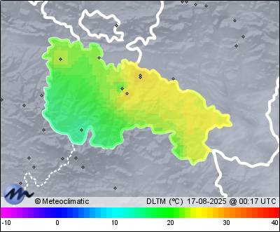 | 16-08-2025 | | | Máx. | Mín. | | | Temperatura | 38,9 | 20,9 | °C | | Humedad | 52 | 18 | % | | Viento | 25 | n/a | km/h | | Presión | 1.021 | 1.015 | hPa | | Precipitación | 0,0 | mm |