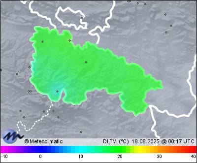 | 17-08-2025 | | | Máx. | Mín. | | | Temperatura | 38,4 | 19,7 | °C | | Humedad | 86 | 18 | % | | Viento | 39 | n/a | km/h | | Presión | 1.010 | 1.007 | hPa | | Precipitación | 0,4 | mm |