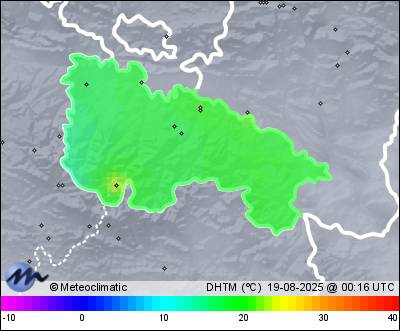 | 18-08-2025 | | | Máx. | Mín. | | | Temperatura | 21,8 | 17,1 | °C | | Humedad | 92 | 69 | % | | Viento | 35 | n/a | km/h | | Presión | 1.012 | 1.008 | hPa | | Precipitación | 0,0 | mm |