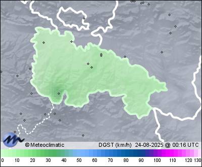 | 23-08-2025 | | | Máx. | Mín. | | | Temperatura | 29,0 | 6,1 | °C | | Humedad | 95 | 25 | % | | Viento | 31 | n/a | km/h | | Presión | 1.025 | 1.017 | hPa | | Precipitación | 0,0 | mm |