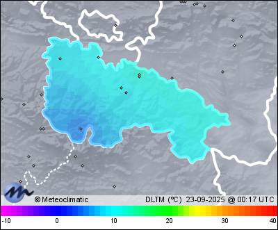 | 22-09-2025 | | | Máx. | Mín. | | | Temperatura | 17,0 | 8,4 | °C | | Humedad | 82 | 52 | % | | Viento | 39 | n/a | km/h | | Presión | 1.022 | 1.019 | hPa | | Precipitación | 0,0 | mm |