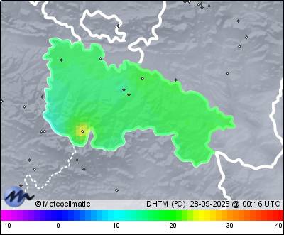 | 27-09-2025 | | | Máx. | Mín. | | | Temperatura | 22,1 | 9,2 | °C | | Humedad | 85 | 36 | % | | Viento | 24 | n/a | km/h | | Presión | 1.013 | 1.010 | hPa | | Precipitación | 0,0 | mm |