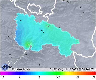 10-10-2025 | | Máx. | Mín. | | Temperatura | 18,8 | 10,6 | °C | Humedad | 86 | 58 | % | Viento | 31 | n/a | km/h | Presión | 1.027 | 1.024 | hPa | Precipitación | 0,0 | mm |