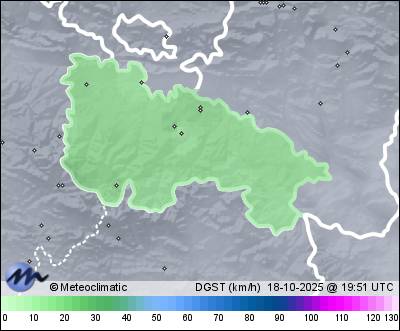Actualizado: 11:40 UTC | 17,4°C 78% | 17,9 °C / 91% | 6,8°C / 76% | | 3 km/h WSW | 13 km/h | 1.020 hPa |