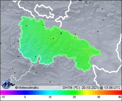 Actualizado: 10:13 UTC | 17,9°C 62% | 17,9 °C / 99% | 9,4°C / 62% | | 9 km/h N | 19 km/h | 1.010 hPa | 0,6 mm |
