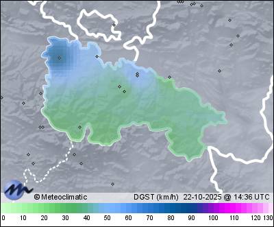 Actualizado: 12:29 UTC | 21,8°C 54% | 23,0 °C / 96% | 10,7°C / 52% | | 10 km/h WSW | 30 km/h | 1.011 hPa | 0,2 mm |