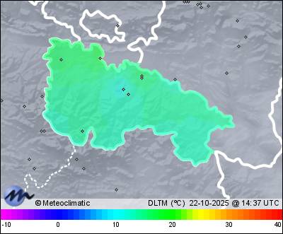 Actualizado: 12:29 UTC | 21,8°C 54% | 23,0 °C / 96% | 10,7°C / 52% | | 10 km/h WSW | 30 km/h | 1.011 hPa | 0,2 mm |