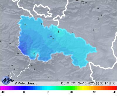 | 23-10-2025 | | | Máx. | Mín. | | | Temperatura | 19,2 | 9,1 | °C | | Humedad | 84 | 38 | % | | Viento | 109 | n/a | km/h | | Presión | 1.011 | 996 | hPa | | Precipitación | 0,0 | mm |