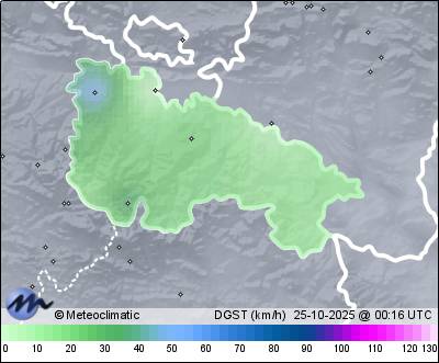 | Actualizado: 12:10 UTC | 9,3°C 81% | 9,3 °C / 99% |  | | -2,6°C / 80% | | 4 km/h N | | 22 km/h | | 1.005 hPa |