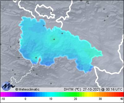 | 26-10-2025 | | | Máx. | Mín. | | | Temperatura | 10,6 | 6,4 | °C | | Humedad | 93 | 70 | % | | Viento | 32 | n/a | km/h | | Presión | 1.025 | 1.018 | hPa | | Precipitación | 0,2 | mm |