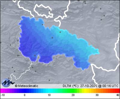 | 26-10-2025 | | | Máx. | Mín. | | | Temperatura | 12,6 | 5,3 | °C | | Humedad | 92 | 62 | % | | Viento | 37 | n/a | km/h | | Presión | 1.019 | 1.013 | hPa | | Precipitación | 0,0 | mm |