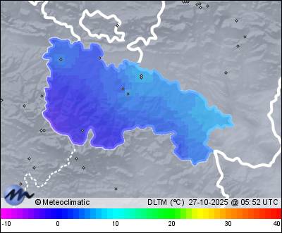 | Actualizado: 02:56 UTC | 4,7°C 87% | 5,4 °C / 88% | | 4,3°C / 84% | | 2 km/h S | | 8 km/h | | 1.025 hPa |