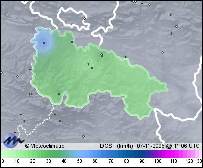 | Actualizado: 08:03 UTC | 7,5°C 87% | 9,1 °C / 87% | | 5,9°C / 72% | | 3 km/h S | | 18 km/h | | 1.013 hPa |