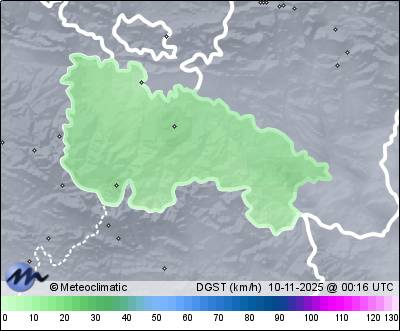 | 09-11-2025 | | | Máx. | Mín. | | | Temperatura | 14,4 | -0,5 | °C | | Humedad | 96 | 57 | % | | Viento | 21 | n/a | km/h | | Presión | 1.026 | 1.021 | hPa | | Precipitación | 0,0 | mm |