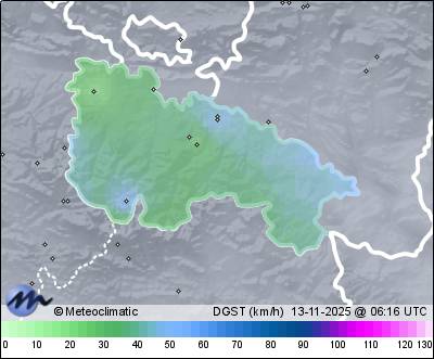 | Actualizado: 04:44 UTC | 11,6°C 72% | 13,2 °C / 72% | | 10,8°C / 63% | | 5 km/h SE | | 24 km/h | | 1.011 hPa |