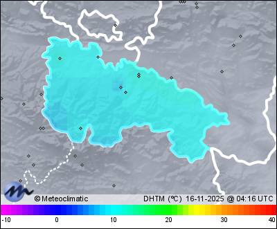 | Actualizado: 02:21 UTC | 5,8°C 95% | 5,9 °C / 95% |  | | 5,8°C / 94% | | Calma | | 18 km/h | | 1.008 hPa |