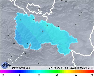 | Actualizado: 00:59 UTC | 4,2°C 92% | 4,8 °C / 92% | | 4,2°C / 92% | | Calma | | 18 km/h | | 1.023 hPa |