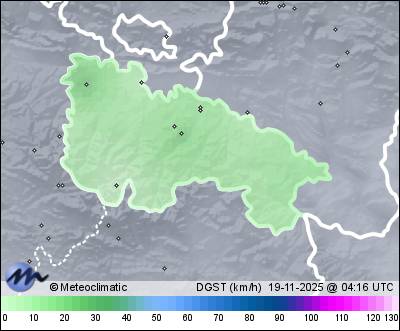 | Actualizado: 02:15 UTC | 2,8°C 76% | 4,4 °C / 81% | | 1,6°C / 72% | | 5 km/h NW | | 12 km/h | | 1.019 hPa |