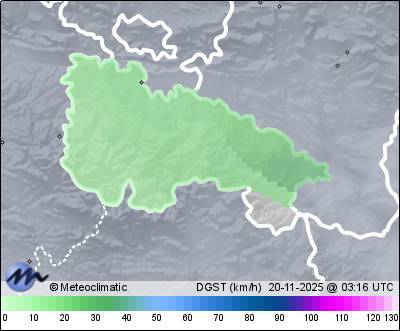 | Actualizado: 01:30 UTC | 5,1°C 88% | 5,5 °C / 88% | | 5,1°C / 86% | | 11 km/h NNE | | 20 km/h | | 1.017 hPa | | 0,3 mm |