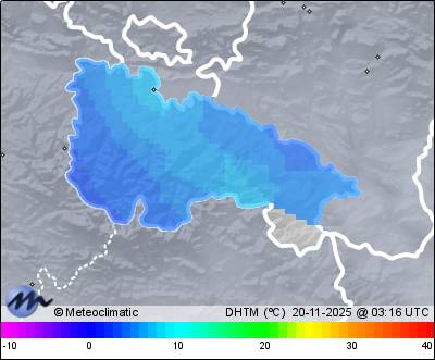| Actualizado: 01:32 UTC | 3,3°C 92% | 3,8 °C / 93% |  | | 3,3°C / 91% | | Calma | | 3 km/h | | 1.020 hPa | | 0,6 mm |
