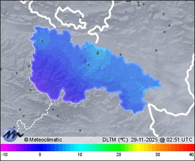 | Actualizado: 01:27 UTC | 3,5°C 94% | 3,8 °C / 94% | | 2,1°C / 94% | | Calma | | 2 km/h | | 1.022 hPa | | 0,1 mm |