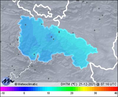 | Actualizado: 05:17 UTC | 4,7°C 88% | 7,8 °C / 91% |  | | 4,6°C / 75% | | Calma | | 21 km/h | | 1.004 hPa | | 3,1 mm |