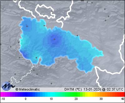 | Actualizado: 00:53 UTC | 3,5°C 93% | 4,1 °C / 94% | | 3,1°C / 91% | | Calma | | 7 km/h |