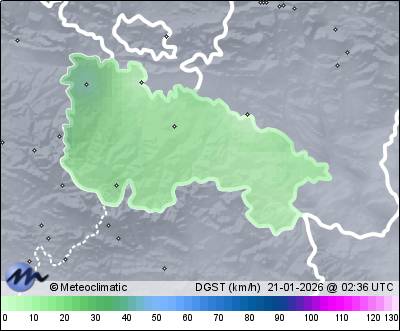 | Actualizado: 00:58 UTC | 5,7°C 69% | 6,5 °C / 70% | | 5,6°C / 63% | | 4 km/h NNE | | 31 km/h | | 1.013 hPa |