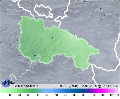 | Actualizado: 00:28 UTC | 5,7°C 88% | 5,7 °C / 97% | | 5,2°C / 87% | | 14 km/h N | | 26 km/h | | 999 hPa |