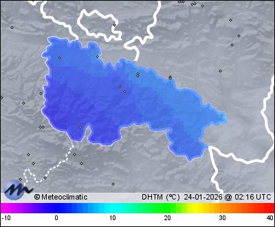 | Niebla heladora | | Actualizado: 00:31 UTC | -1,1°C 98% | -0,9 °C / 98% |  | | -1,1°C / 98% | | Calma | | 15 km/h | | 997 hPa |