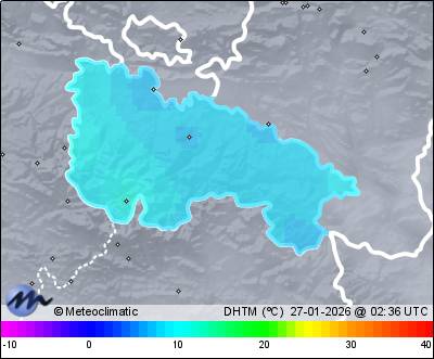 | Actualizado: 00:59 UTC | 7,1°C 91% | 7,2 °C / 91% | | 6,9°C / 91% | | 2 km/h N | | 10 km/h | | 999 hPa |
