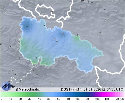 | Actualizado: 00:32 UTC | 2,5°C 94% | 3,9 °C / 94% | | 2,3°C / 91% | | Calma | | 52 km/h | | 1.002 hPa | | 1,2 mm |