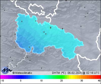 | Actualizado: 00:17 UTC | 4,3°C 92% | 5,2 °C / 92% | | 4,2°C / 89% | | 13 km/h SSW | | 39 km/h | | 998 hPa | | 1,4 mm |