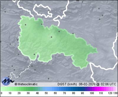| Actualizado: 00:44 UTC | 5,9°C 81% | 5,9 °C / 84% | | 5,4°C / 81% | | 8 km/h SE | | 45 km/h | | 1.002 hPa |