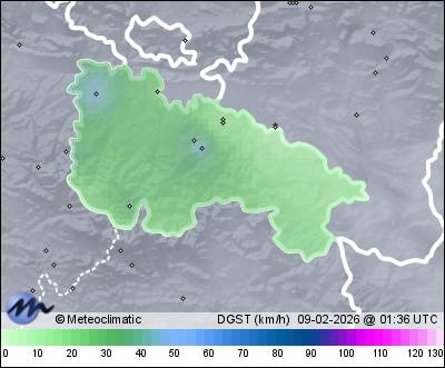 | Actualizado: 00:29 UTC | 6,5°C 71% | 6,5 °C / 72% | | 5,9°C / 70% | | 5 km/h SW | | 23 km/h | | 1.009 hPa |