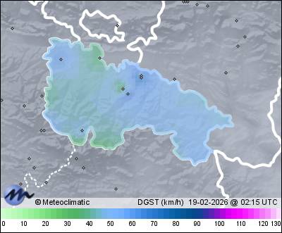 | Actualizado: 00:30 UTC | 2,7°C 93% | 3,1 °C / 93% |  | | 2,7°C / 92% | | 8 km/h NNE | | 29 km/h | | 1.014 hPa |