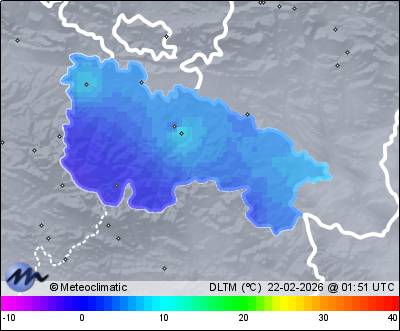 | Escarcha | | Actualizado: 00:41 UTC | -2,3°C 95% | -1,0 °C / 95% |  | | -2,4°C / 94% | | Calma | | 4 km/h | | 1.037 hPa |