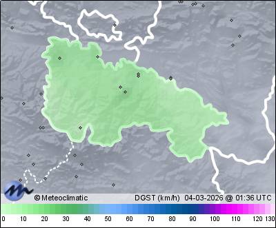 | Actualizado: 00:19 UTC | 7,1°C 76% | 7,7 °C / 84% | | 6,6°C / 76% | | 11 km/h E | | 13 km/h | | 1.018 hPa |