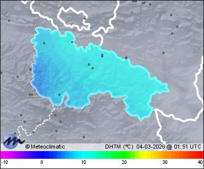 | Actualizado: 00:13 UTC | 9,9°C 87% | 10,0 °C / 87% |  | | 9,8°C / 86% | | 3 km/h ESE | | 16 km/h | | 1.021 hPa |