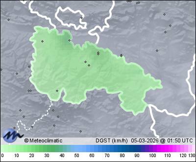 | Actualizado: 00:02 UTC | 8,8°C 82% | 14,2 °C / 92% |  | | 2,7°C / 57% | | Calma | | 32 km/h | | 1.018 hPa |