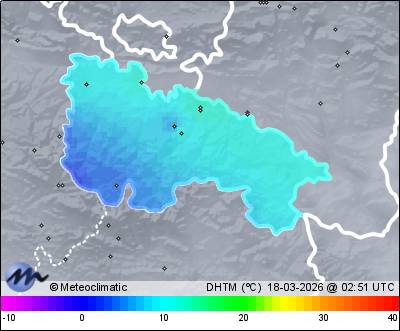 | Actualizado: 00:50 UTC | -1,2°C 72% | 0,9 °C / 72% |  | | -1,2°C / 66% | | Calma | | 6 km/h | | 1.025 hPa |