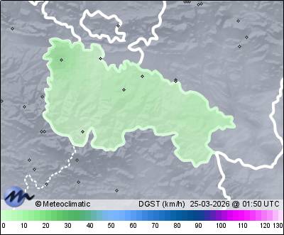 | Actualizado: 00:15 UTC | 6,4°C 86% | 6,4 °C / 90% | | 5,1°C / 86% | | 6 km/h E | | 15 km/h | | 1.023 hPa |
