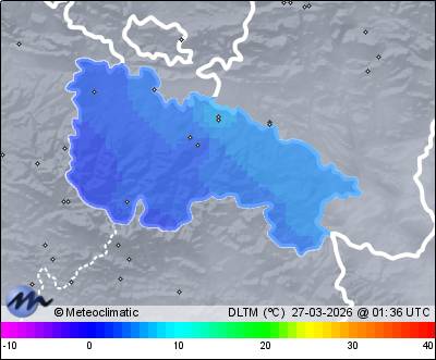 | Actualizado: 00:17 UTC | 3,2°C 81% | 3,2 °C / 81% |  | | 3,1°C / 80% | | 5 km/h NNE | | 18 km/h | | 1.026 hPa |
