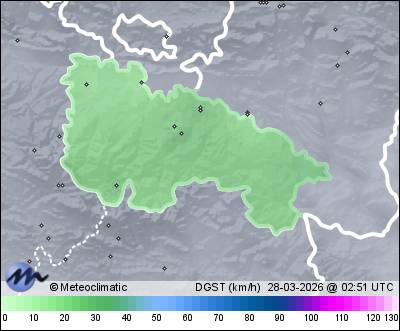 | Actualizado: 01:32 UTC | 2,6°C 72% | 3,0 °C / 72% |  | | 2,6°C / 69% | | 10 km/h ENE | | 27 km/h | | 1.026 hPa |
