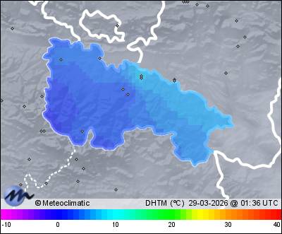 | Actualizado: 00:17 UTC | 3,2°C 74% | 3,2 °C / 74% |  | | 2,9°C / 72% | | 14 km/h NE | | 32 km/h | | 1.032 hPa |