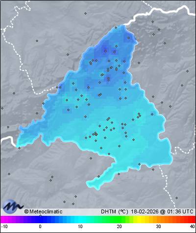 | Actualizado: 13:13 UTC | 9,7°C 64% | 9,7 °C / 97% | | -1,6°C / 63% | | 7 km/h S | | 31 km/h | | 1.020 hPa |