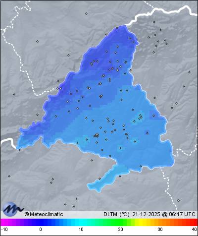 | Actualizado: 11:00 UTC | 3,8°C 83% | 4,0 °C / 91% | | 0,9°C / 79% | | 5 km/h WNW | | 13 km/h | | 1.011 hPa |
